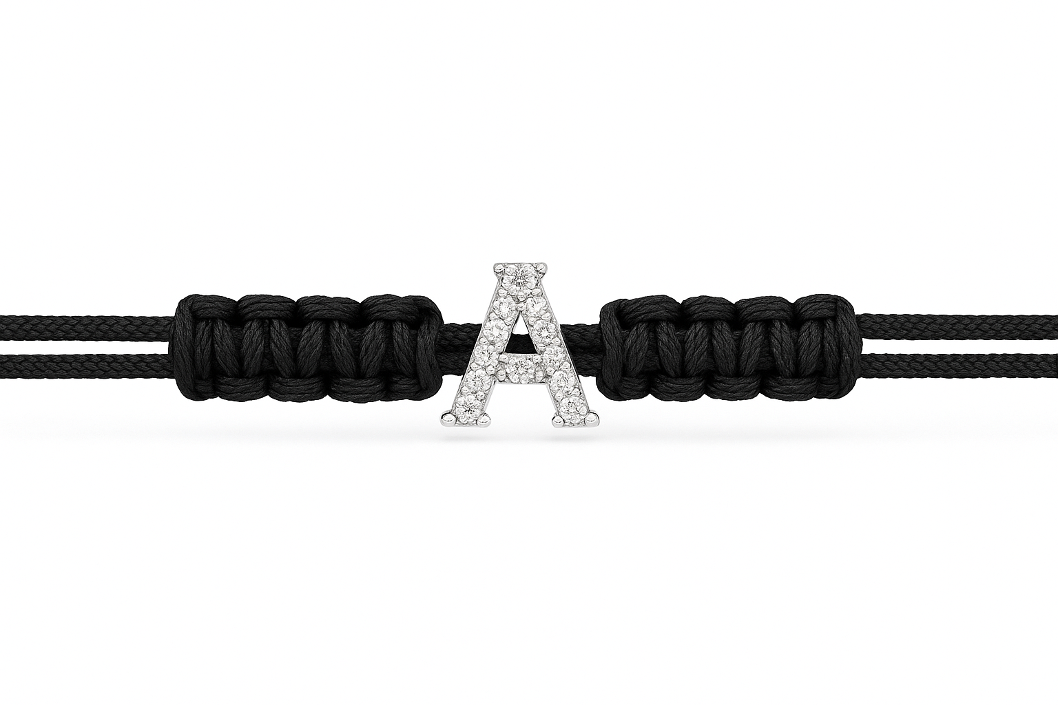 Bracciale con cordino intrecciato scooby-doo personalizzato con lettera in oro e diamanti.