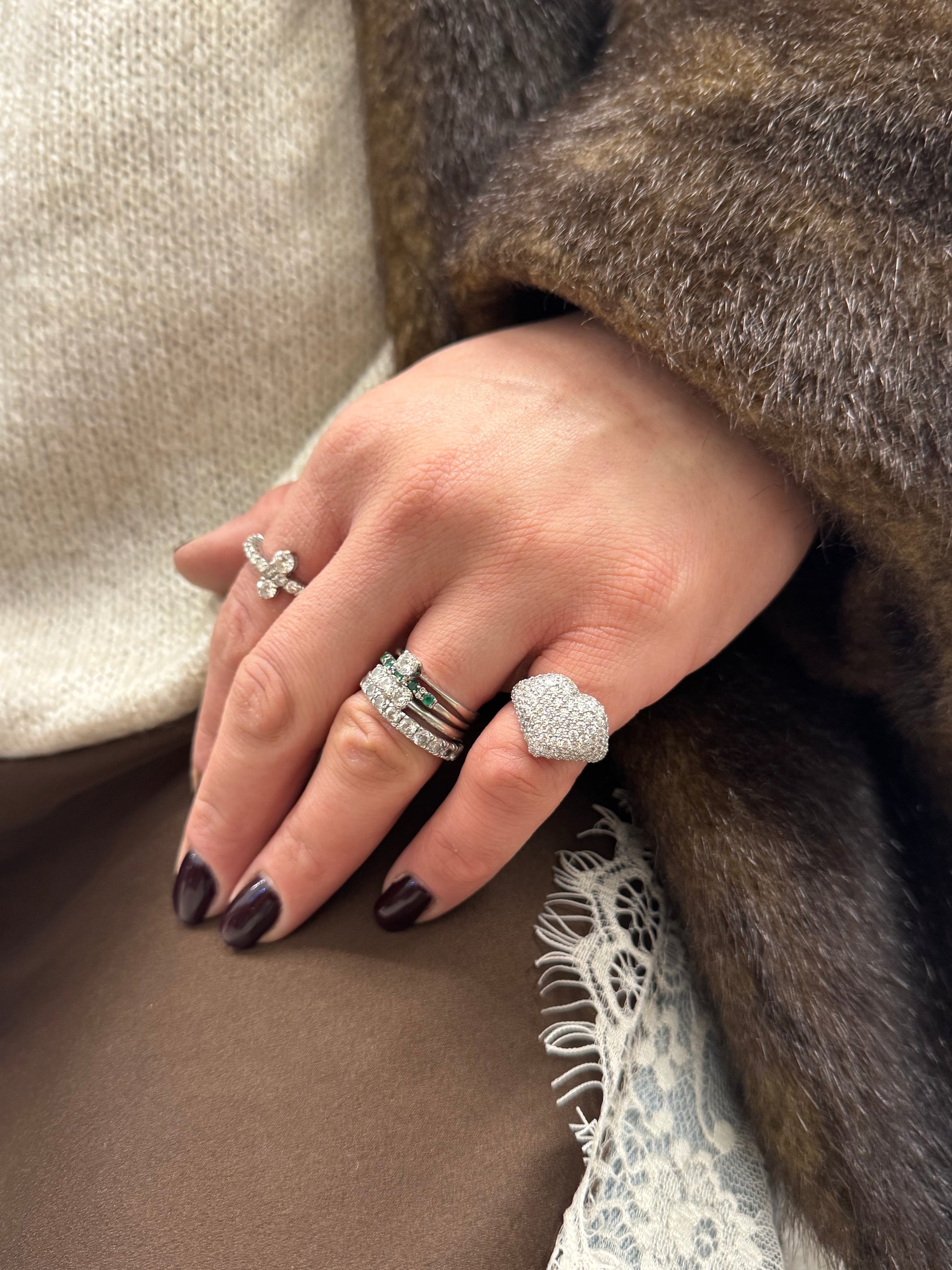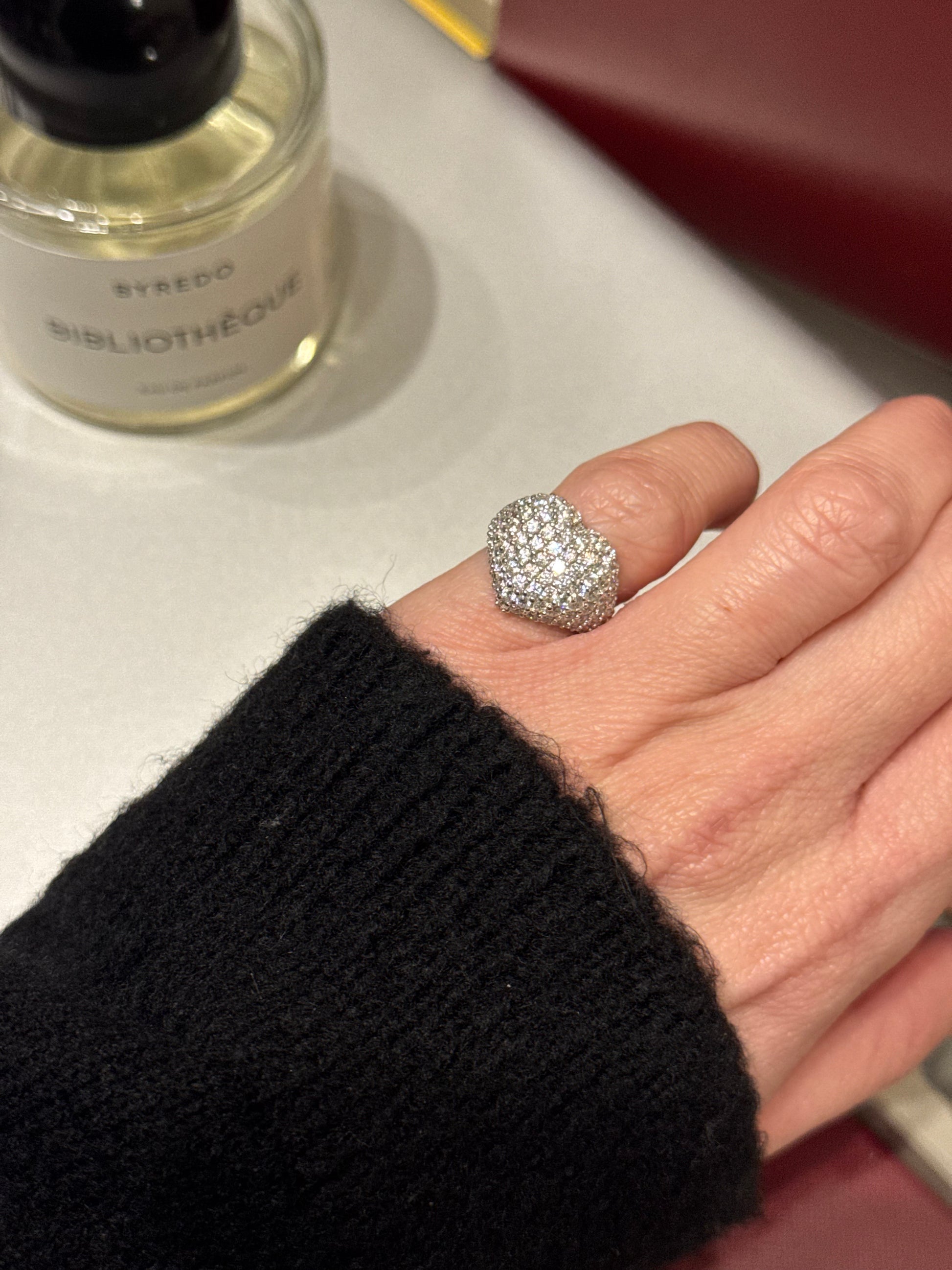 Anello Chevalier in argento 925 o argento placcato in oro 18 carati completamente tempestato di zirconi incastonati a mano.