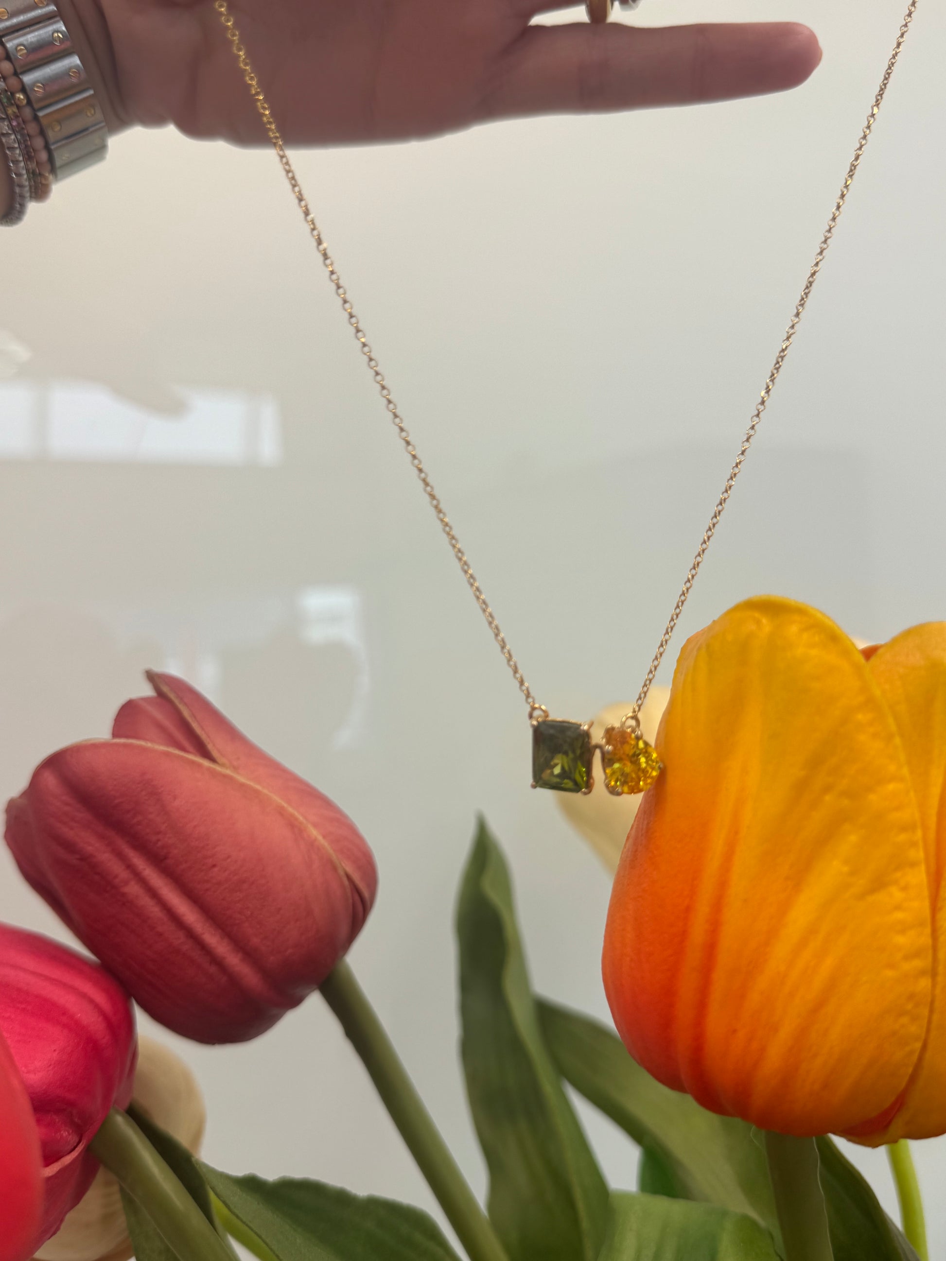 Colla a in argento 925 placcato in oro 18 carati con cz di taglio a goccia e taglio smeraldo.