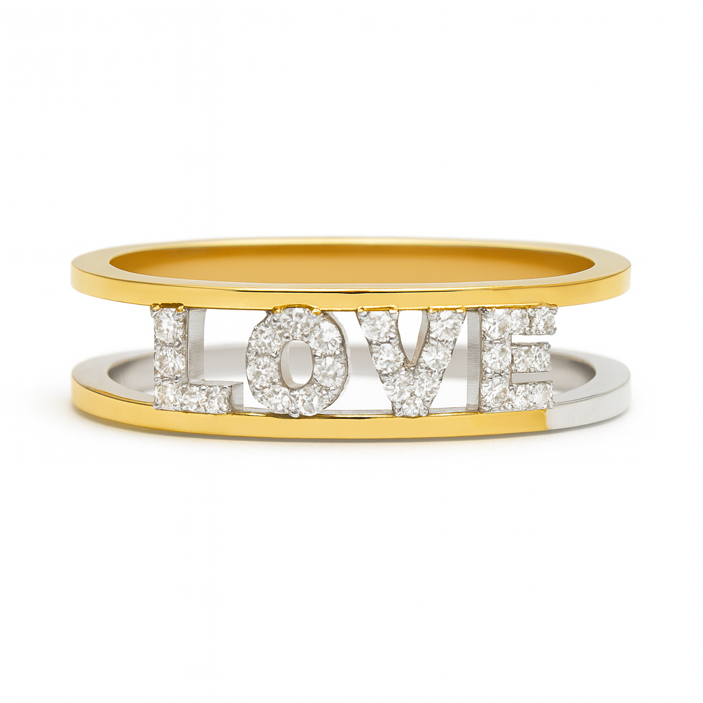 Anello in argento 925 a binario placcato in oro 18 carati personalizzabile con lettere tempestate di brillantini.
