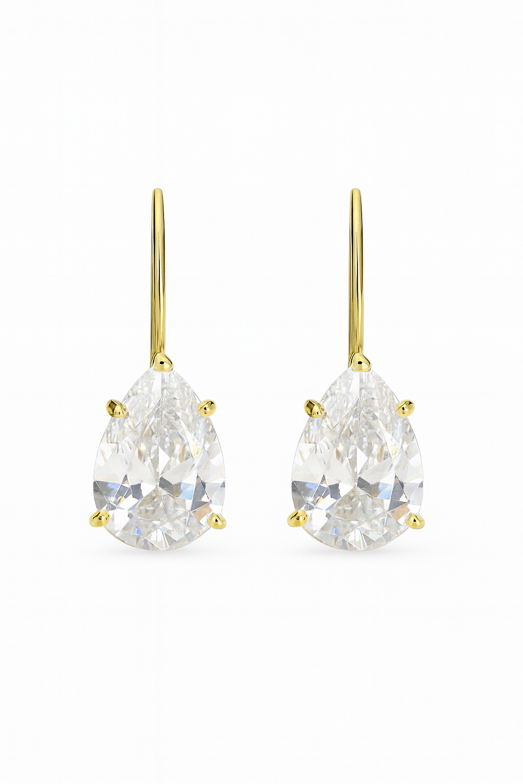 Orecchini in argento 925 placcato in oro 18 carati con pietre Cubic Zirconia taglio smeraldo, Goccia o Ovale
